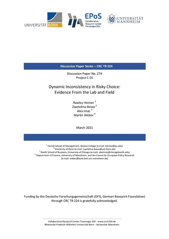 274/2021, C01, Rawley Heimer, Zwetelina Iliewa, Alex Imas, Martin Weber. Published in American Economic Review 115 (2025), 330-363