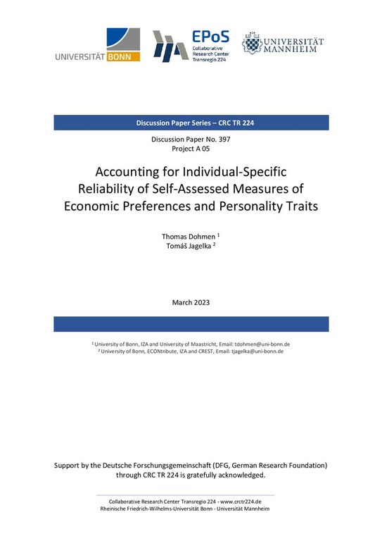 397/2023, A05, Thomas Dohmen, Tomáš Jagelka. Published in Journal of Political Economy Microeconomics 2 (2024), 3, 399-462