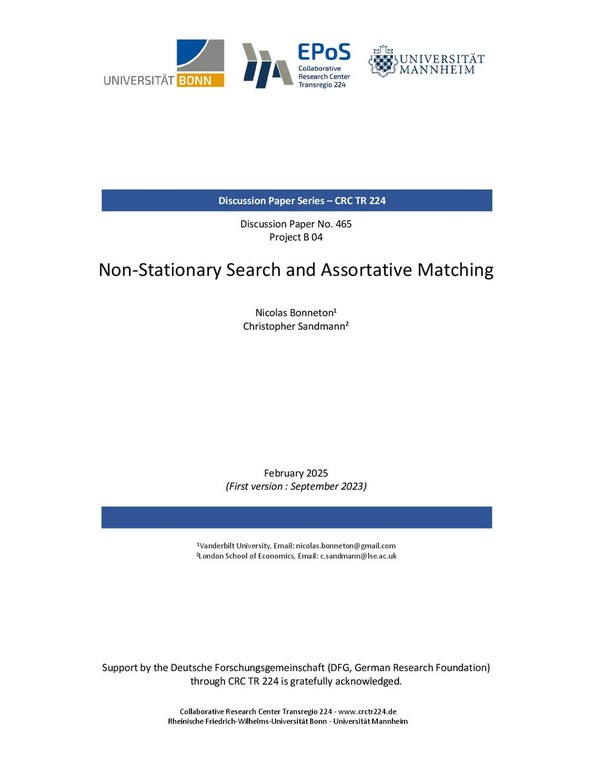Non-Stationary Search and Assortative Matching 465/2023, B04, Nicolas Bonneton, Christopher Sandmann. First version: September 2023 CRCTR224_2023_465v2.pdf application/pdf application/pdf Size 844.1 KB Download