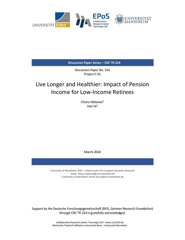 Live Longer and Healthier: Impact of Pension Income for Low-Income Retirees 514/2024, C01, Chiara Malavasi, Han Ye CRCTR224_2024_514v2.pdf application/pdf application/pdf Size 893.3 KB Download