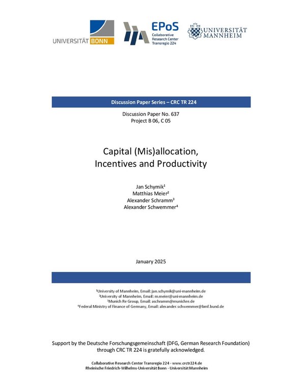 Capital (Mis)allocation, Incentives and Productivity 637/2025, B06, C05, Jan Schymik, Matthias Meier, Alexander Schramm, Alexander Schwemmer CRCTR224_2025_637.pdf application/pdf application/pdf Size 833.6 KB Download