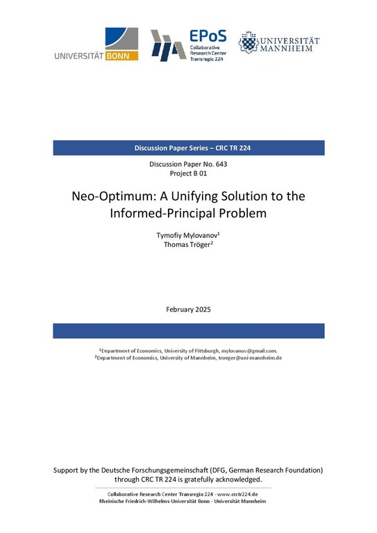 Neo-Optimum: A Unifying Solution to the Informed-Principal Problem 643/2025, B01, Tymofiy Mylovanov, Thomas Tröger CRCTR224_2025_643.pdf application/pdf application/pdf Size 542.6 KB Download