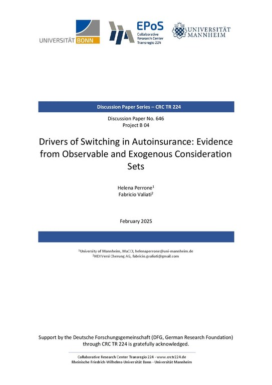 Drivers of Switching in Autoinsurance: Evidence from Observable and Exogenous Consideration Sets 646/2025, B04, Helena Perrone, Fabricio Valiati CRCTR224_2025_646.pdf application/pdf application/pdf Size 498.6 KB Download