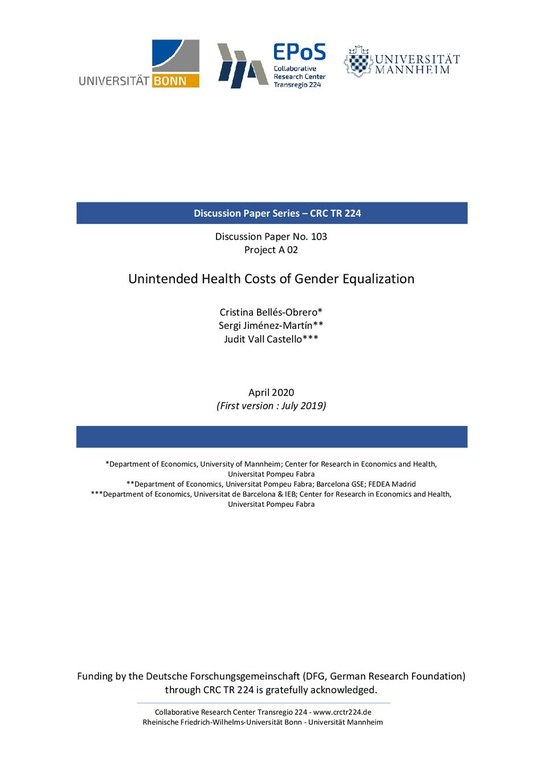 103/2019, A02, Cristina Bellés-Obrero, Sergi Jiménez-Martín, Judit Vall Castello. First version: July 2019. Published in Journal of Population Economics 34 (3), 1-42