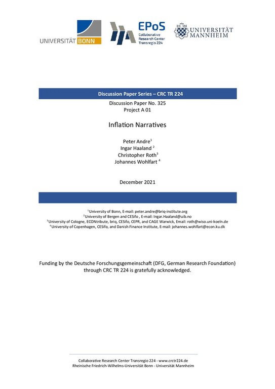 Inflation Narratives 325/2021, A01, Peter Andre, Ingar Haaland, Christopher Roth, Johannes Wohlfart CRCTR224_2021_325.pdf application/pdf application/pdf Size 4.3 MB Download
