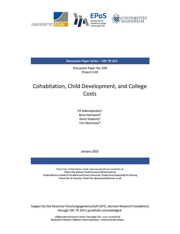 Cohabitation, Child Development, and College Costs 628/2025, A03, Efi Adamopoulou, Anne Hannusch, Karen Kopecky, Tim Obermeier CRCTR224_2025_628.pdf application/pdf application/pdf Size 987.2 KB Download