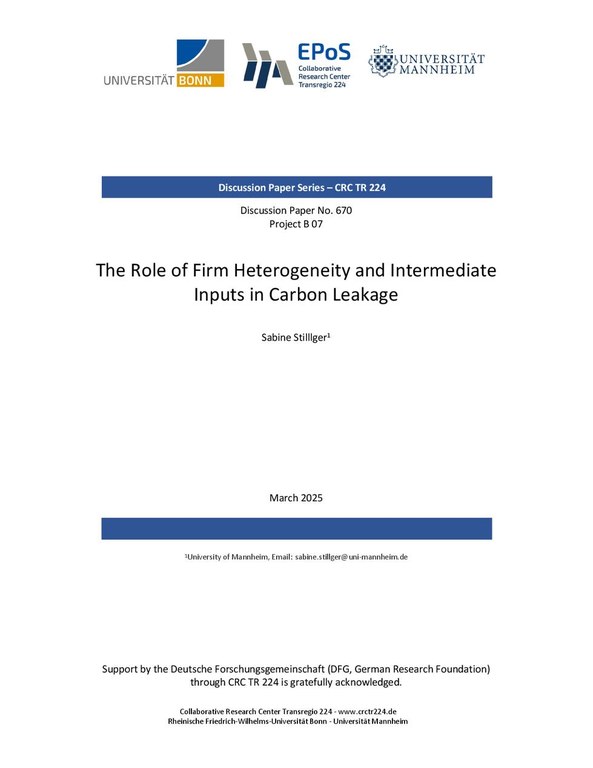 The Role of Firm Heterogeneity and Intermediate Inputs in Carbon Leakage 670/2025, B07, Sabine Stillger CRCTR224_2025_670.pdf application/pdf application/pdf Size 3.2 MB Download